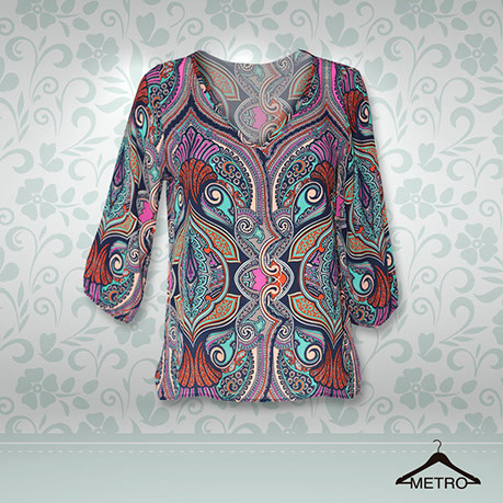 Blusa para mujer de figuras y colores con manga larga, hermosa para lucirla este invierno.